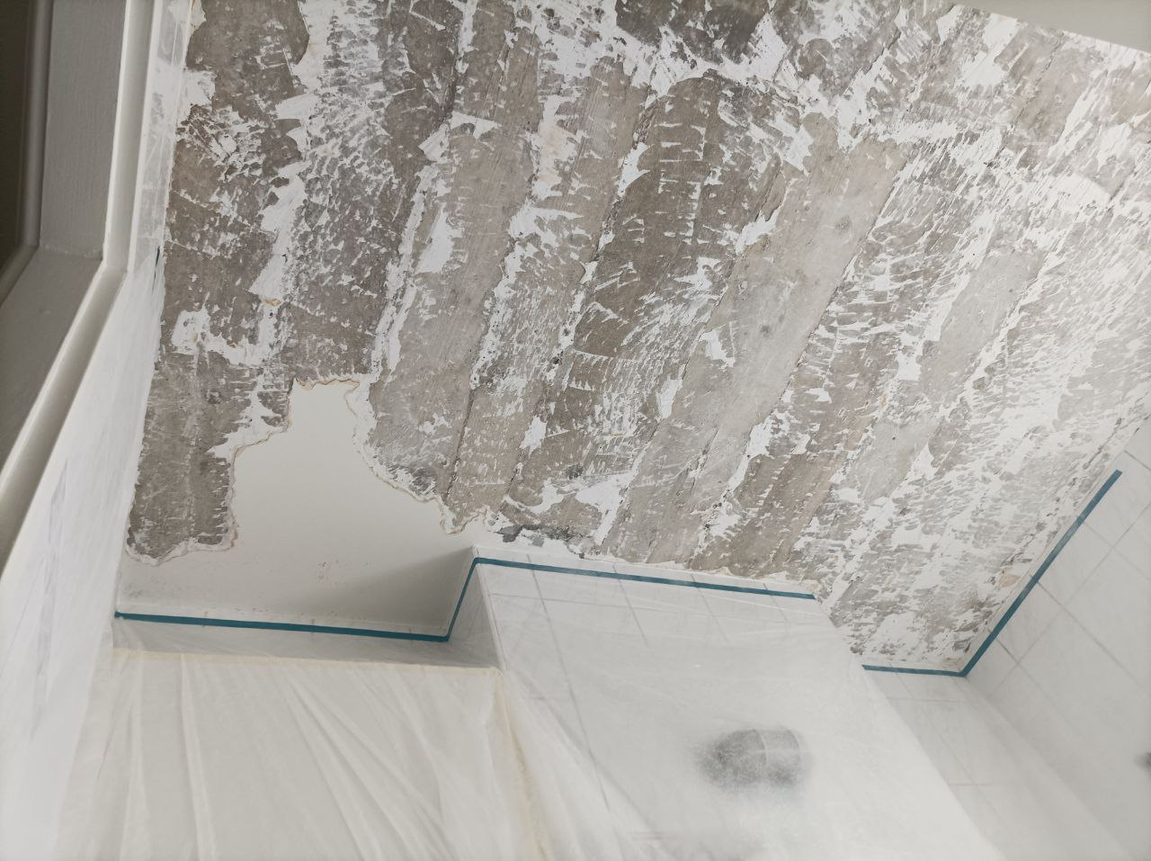 Dans les salles de bains, l’humidité est importante avec les vapeurs d’eau qui dépose des gouttelettes d’eau sous les plafonds. Quand il s’agit de plafond en plâtre, il est important de contrôler s’il n’y a pas de microfissures laissant passer les infiltrations d’eau qui détériore le plâtre.