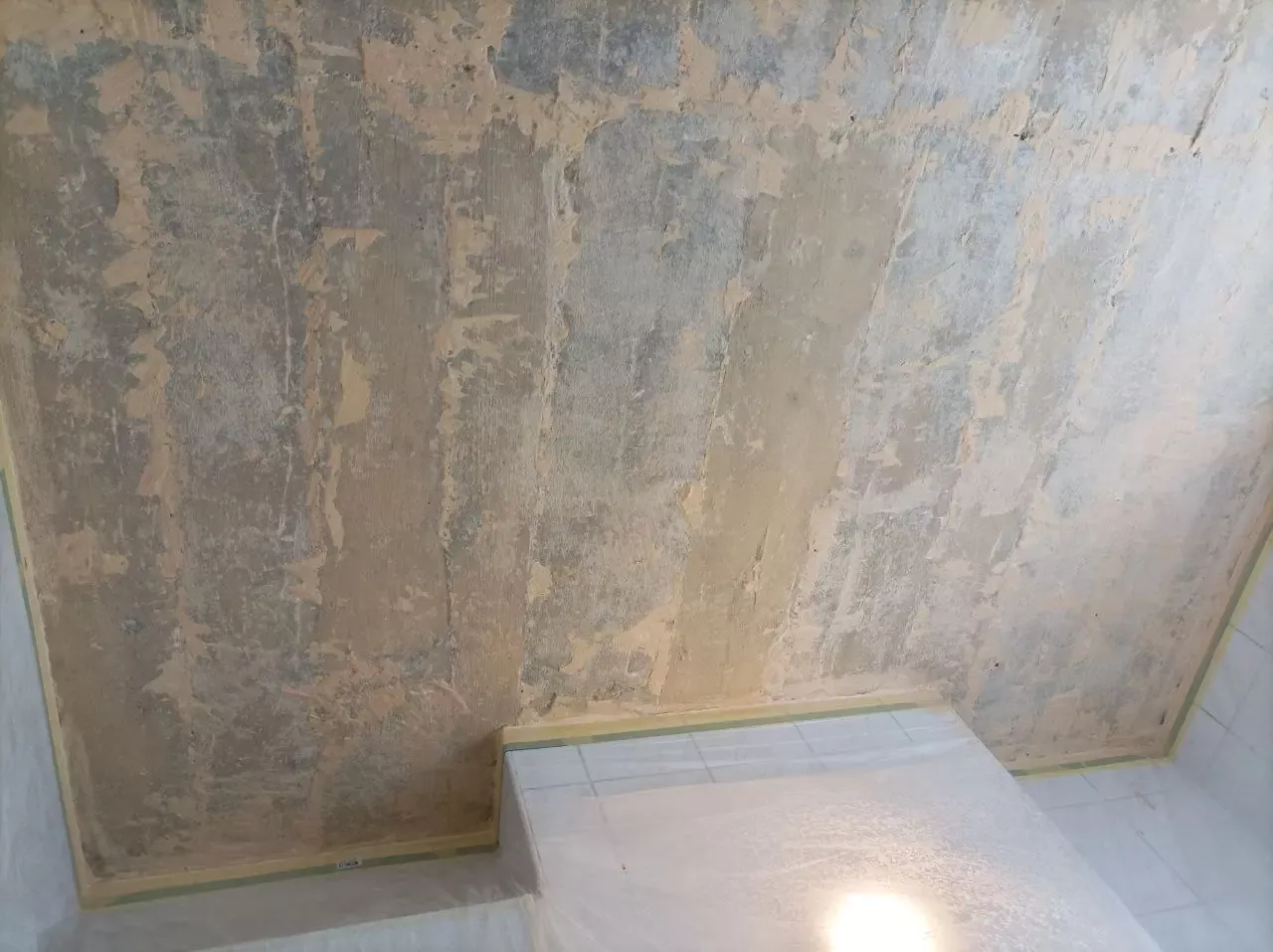 Un plâtre détérioré, qui a fusé, aucun revêtement ne tiendra dessus.