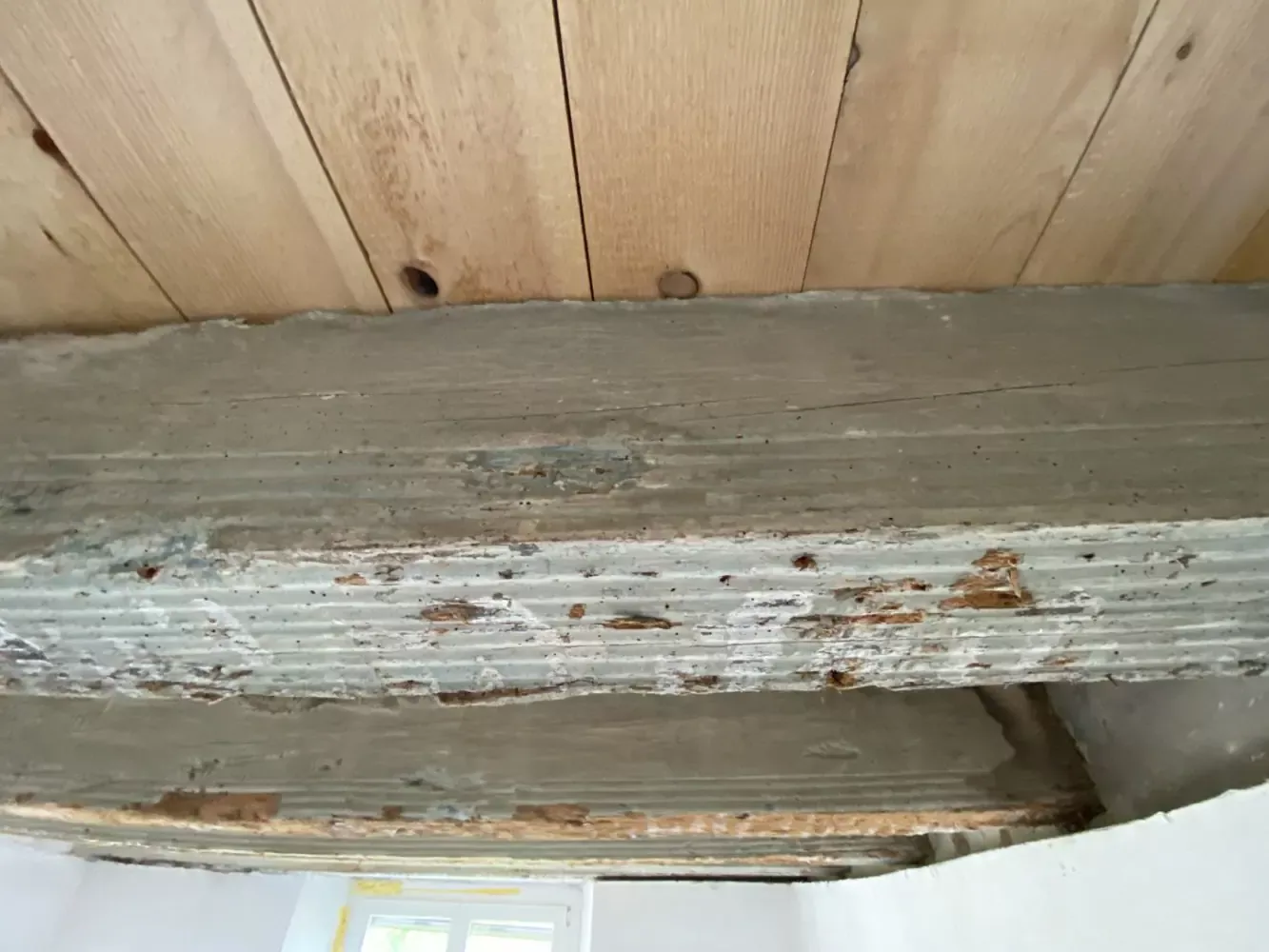 Rénovation d’une pièce à vivre avec le démontage du plafond pour laisser apparaître les poutres, notre travail était de rendre les poutres naturelles en y retirant la peinture par aérogommage y compris les planches neuves pour leurs données un aspect ancien pour ne pas trop donner de contraste entre le vieux et le neuf.