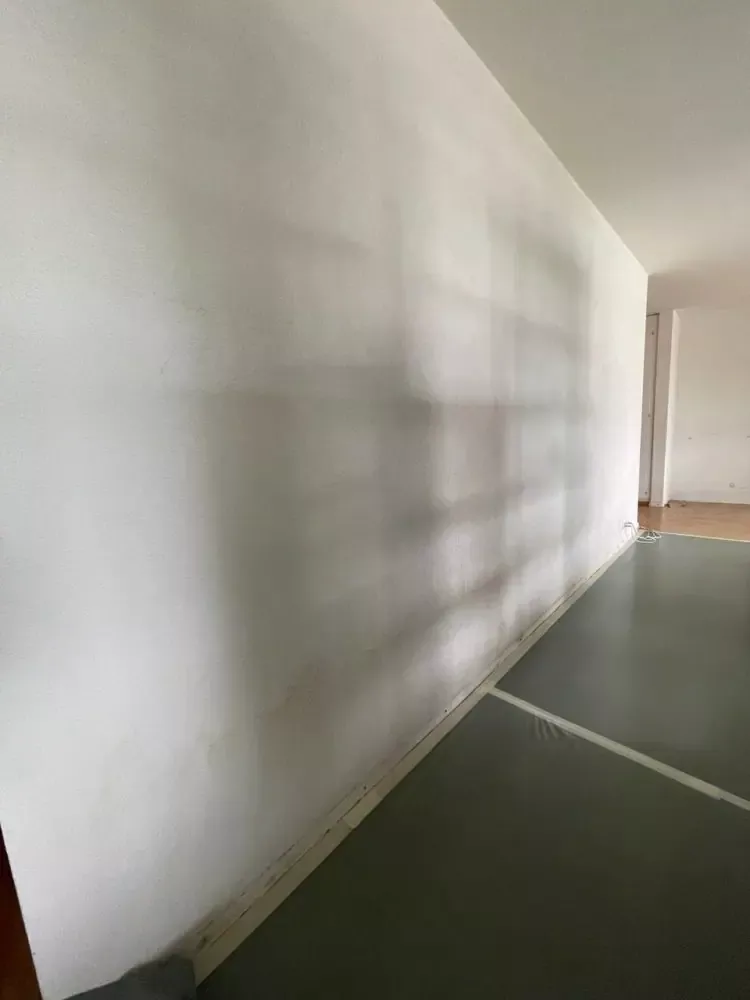 Les travaux de plâtrerie et peinture sont courants après un dégât d’eau. Une fois les locaux asséchés, nous intervenons pour rénover le plâtre, la peinture ou autres revêtements. Ici, des murs en crépi. Les travaux seront les suivants : grattage des zones cloquées et abîmées, enduisage complet de la surface avec une masse anti-fissures et finition par un crépi à l’identique.