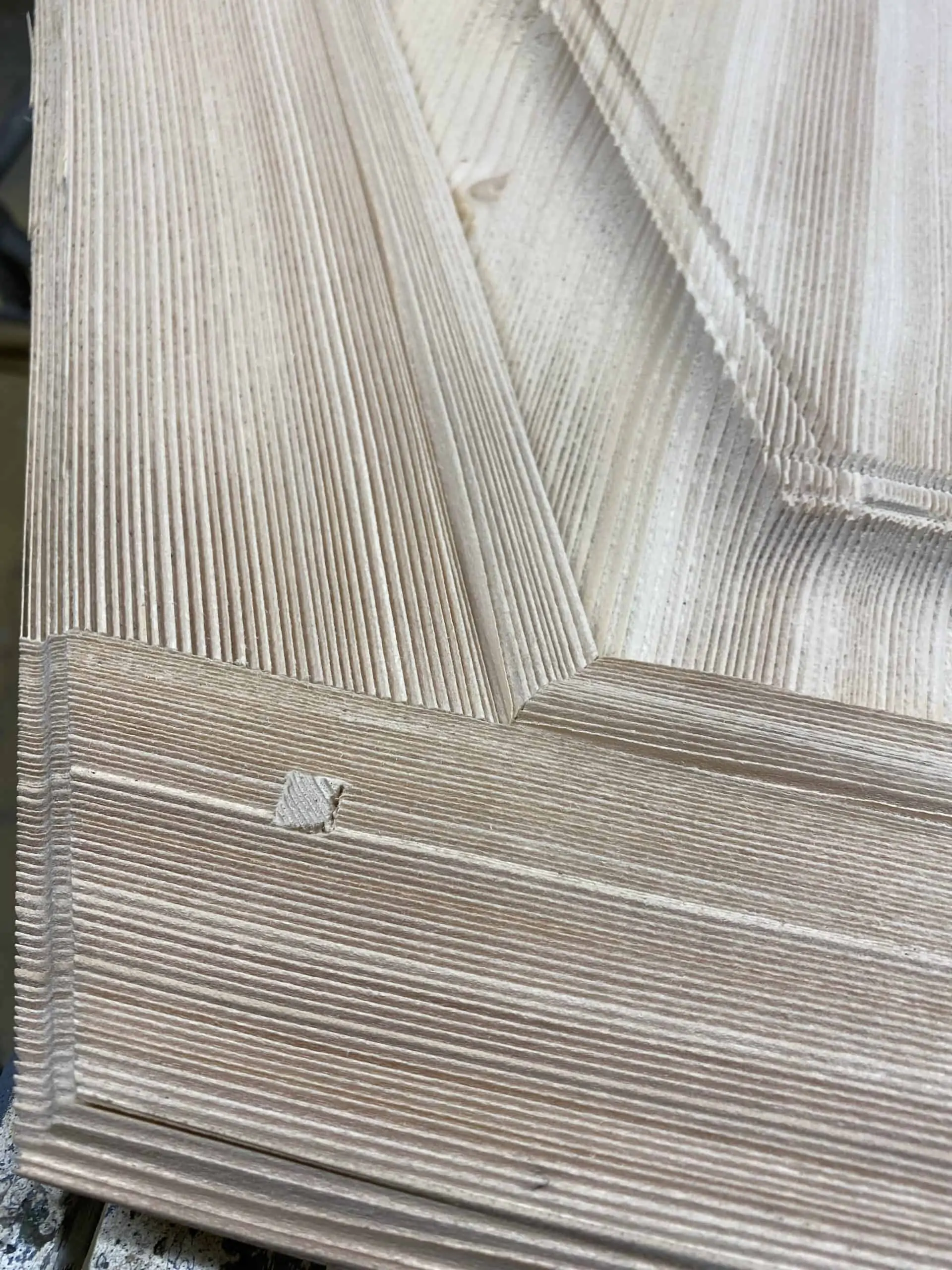 Ils nous arrivent également de travailler pour des décorateurs d’intérieurs. Ici, le but était de donner un aspect ancien à des boiseries en sapin, nous avons donc exécuté un aérogommage intensif pour creuser le veinage du bois. En finition, nous avons appliqué un vernis incolore pour protéger la surface du bois.