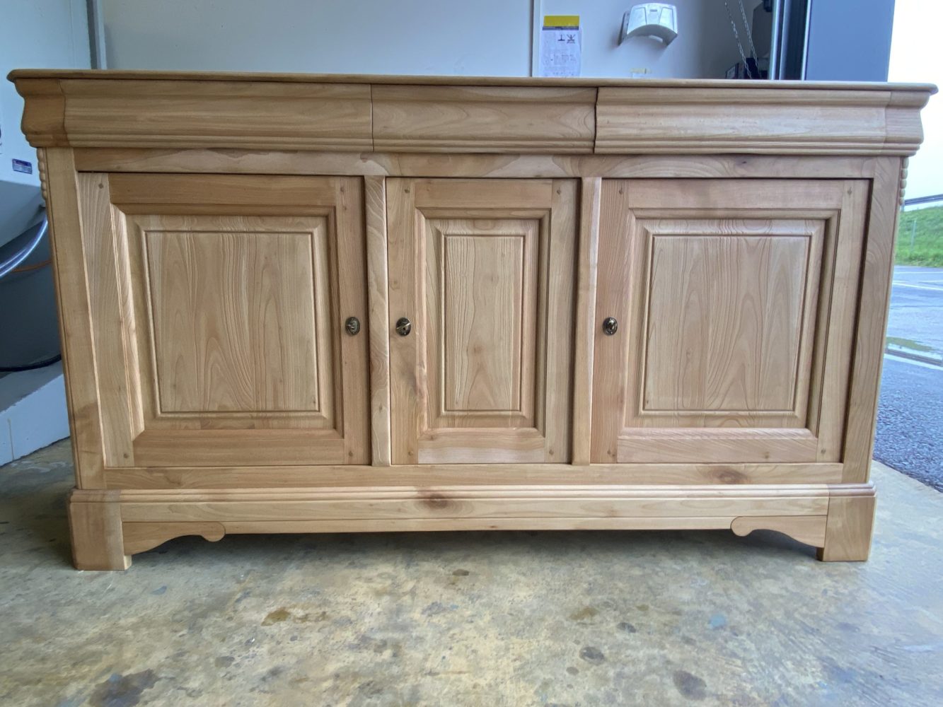Sur ce buffet en merisier, nous lui avons redonné une seconde vie après un décapage par aérogommage de la surface. Nous lui avons ensuite appliqué un traitement pour le protéger des salissures.