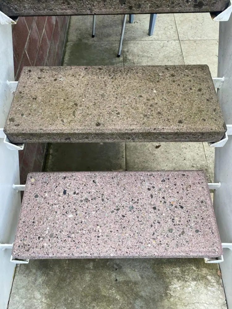 Nous avons récemment effectué un test d’hydrogommage avant travaux sur les marches d’escalier en pierre de gravier pour éliminer les traces de salissures causées par la pollution ambiante ainsi que la mousse végétale due à l’humidité. Pour ce faire, nous avons utilisé un abrasif doux et naturel qui nous a permis de nettoyer la surface en profondeur sans l’abîmer.