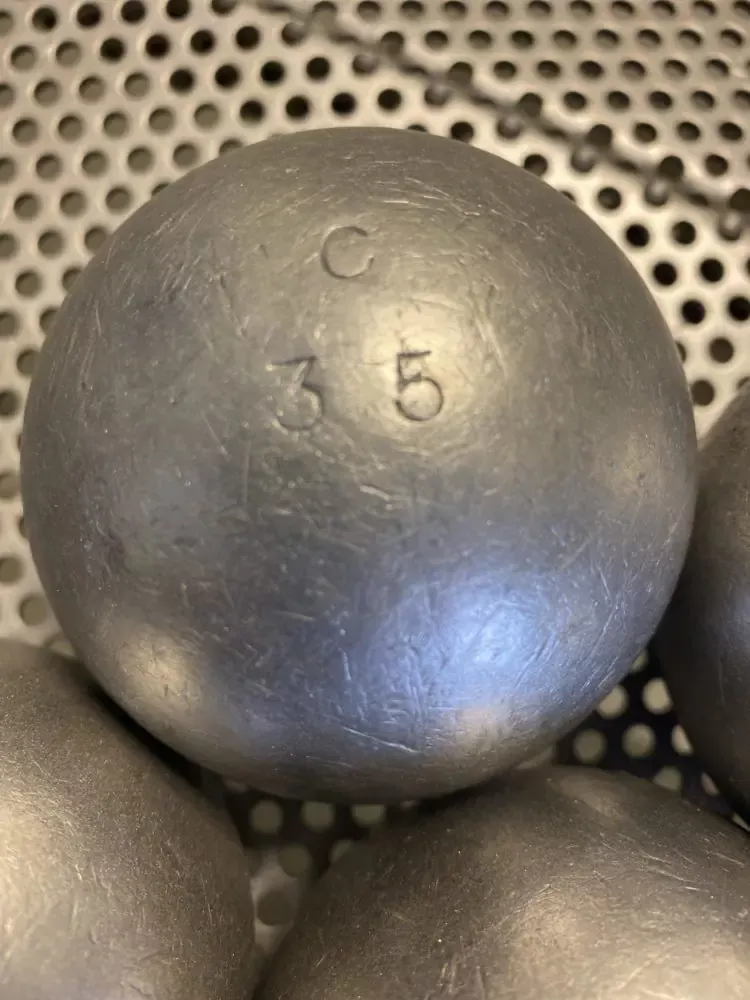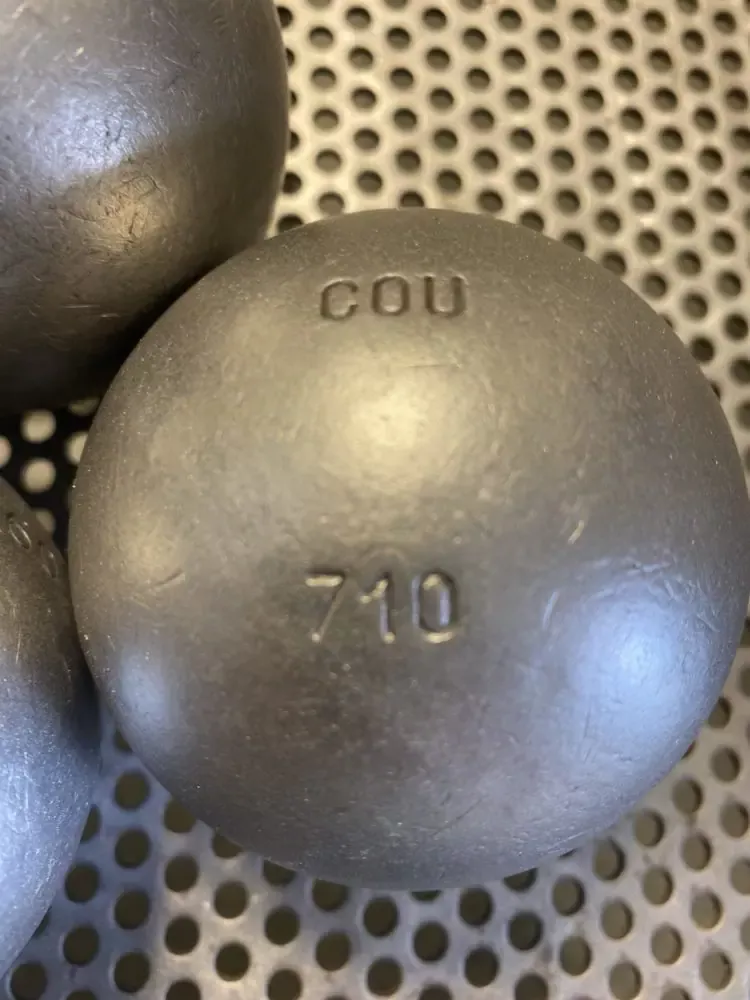 Le microbillage est une méthode de nettoyage de surface qui n’altère pas le revêtement. Ici, sur des boules de pétanque, les surfaces des boules sont nettoyées et lustrées, le poids et dimensions reste identique a ceux d’origines.