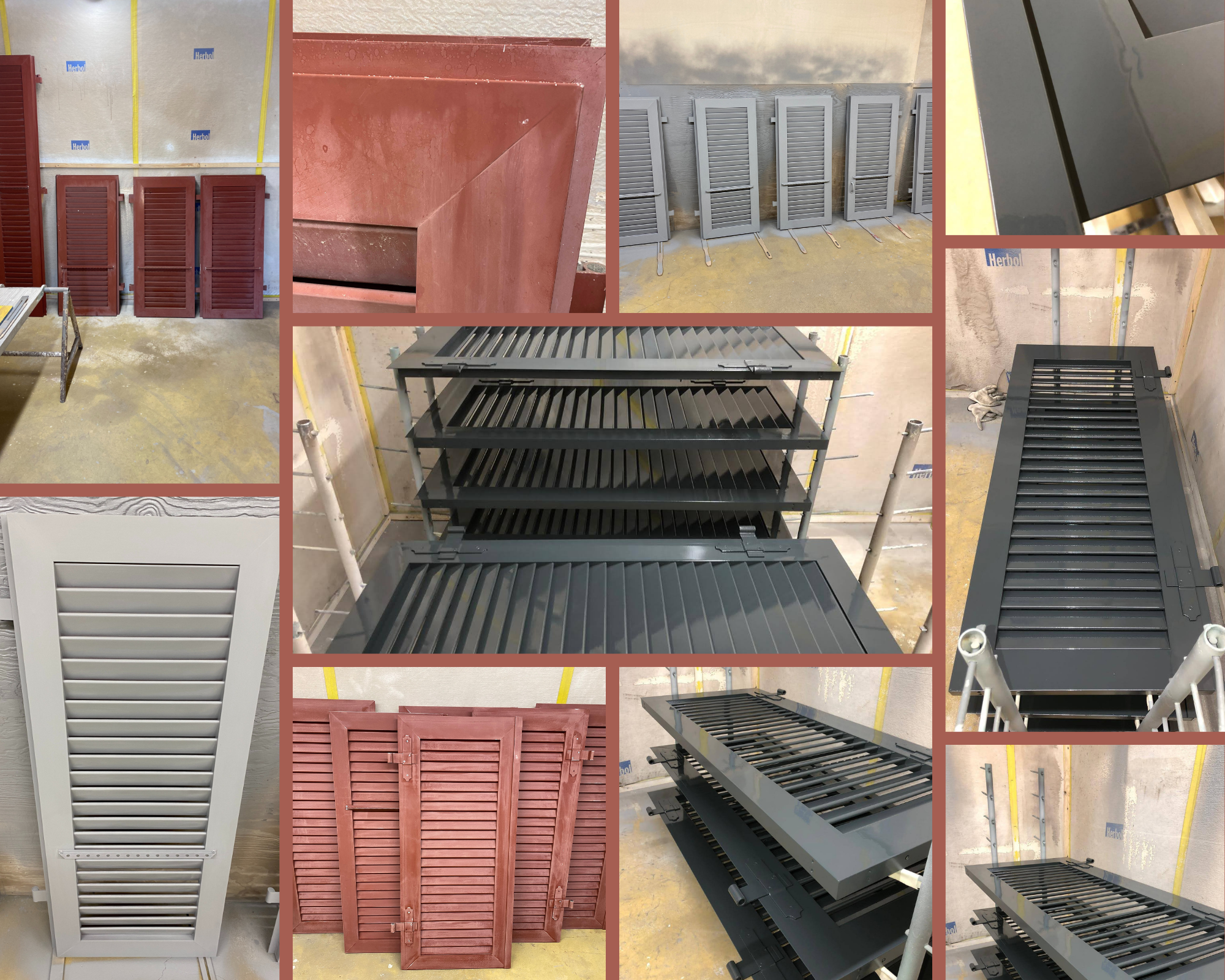 Aérogommage de volets en aluminium + peinture époxy 2 composants